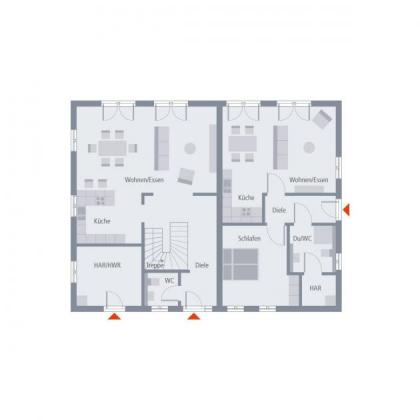Das Einfamilien-Satteldachhaus verteilt sich großzügig auf 1 ½ Etagen. Ein halbes Untergeschoss und ein volles Obergeschoss bieten für Familien mit bis zu vier Kindern reichlich Raum zur individuellen Entfaltung. Schon der offen gestaltete Wohn-, Koch- und Essbereich deutet auf die großzügigen Raumverhältnisse hin. In der oberen Etage warten das 25 m² große Eltern- und vier weitere Zimmer auf Sie. Im Erdgeschoss befindet sich die zusätzliche Einliegerwohnung. Mit eigenem Zugang und voller Ausstattung bietet sie vielfältige Nutzungsmöglichkeiten: sich verändernde Familiensituationen, Ferienwohnung, Business oder, oder ... Der Gestaltungsfreiheit sind keine Grenzen gesetzt.