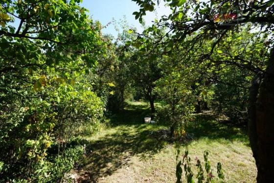 - begrünter u. mit Obstbäumen versehener Gartenbereich