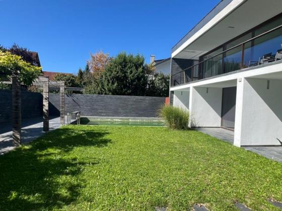 In prominenter Lage des beliebten Kaufbeurer Ortsteils Oberbeuren liegt an der direkten Sichtachse nach Süden zu den Allgäuer Bergen, über das Biotop "Mösle" mit seinen Wasserflächen blickend, diese außergewöhnliche Villa.