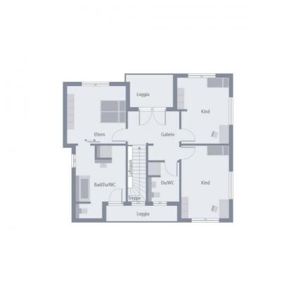 Attraktive Architektur und hoher Wohnkomfort vereinen sich in unserer Stadtvilla 20 zu einer gelungenen Symbiose. Der Zugang zu den Wohnräumen im Erdgeschoss erfolgt nicht nur über die Eingangstür, sondern auch direkt durch den integrierten Carport. So können Sie bei schlechtem Wetter Ihre Einkäufe trocken in den angrenzenden Hauswirtschaftsraum bringen. Der kombinierte Wohn-Koch-Essbereich präsentiert sich offen und dank zahlreicher Glasflächen in einem hellen Licht. Im Obergeschoss trennt eine großzügige, zentral gelegene Galerie den Elternbereich mit Schlafzimmer und großem, angeschlossenem Badezimmer von den beiden Kinderzimmern, die ein weiteres Badezimmer mit Dusche und WC haben. Von der Galerie aus gelangen Sie direkt in die einladende Loggia. Eine weitere Loggia, die sich über dem Vordereingang befindet und von den beiden Badezimmern zugänglich ist, bietet Ihnen die Möglichkeit, auch bei Wind und Wetter frische Luft zu genießen und ungestört zu entspannen.