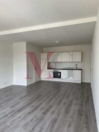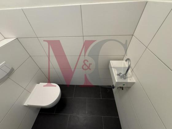 Die Wohnung ist mit einem stilvollen, grauen Laminatboden ausgestattet. Die Wände sind glatt gespachtelt und weiß gestrichen, was den Räumen eine helle und freundliche Atmosphäre verleiht.
