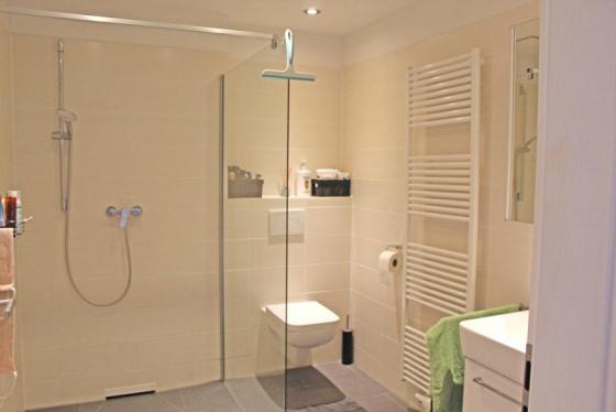 -Bad mit bodengleicher Dusche und Handtuchheizkörper