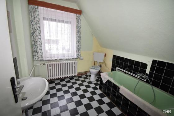 Über eine massive Holztreppe in der geräumigen Diele gelangen wir in das Dachgeschoss. Hier stehen Ihnen 3 Schlafzimmer und ein Badezimmer mit Badewanne und WC zur Verfügung.