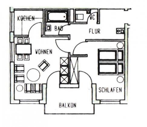Die ca. 53 m² große 2-Raum-Wohnung befindet sich im 1. OG und teilt sich wie folgt auf: