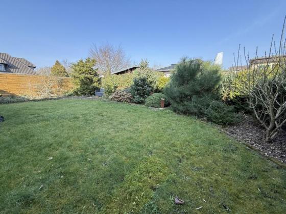 Der Gartenbereich ist pflegeleicht angelegt und verfügt über eine großzügige, überdachte Terrasse, die sich über die gesamte Hausbreite erstreckt – sogar die Kelleraußentreppe liegt im geschützten Bereich.