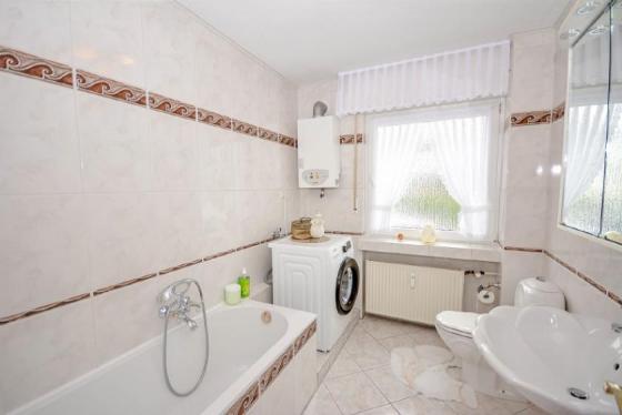Die Wohnung überzeugt durch einen durchdachten Grundriss und eine angenehme Wohnatmosphäre. Herzstück ist das großzügige Wohn- und Esszimmer, das direkten Zugang zum Balkon bietet. Der Balkon ist mit einer Markise ausgestattet und über einige Stufen gelangt man von hier aus direkt in den Garten. Der vordere Gartenbereich steht allen Hausbewohnern zur Verfügung, während sich im hinteren Teil ein Gartenanteil befindet, der ausschließlich dieser Wohnung zur Nutzung zugeordnet ist (Sondernutzungsrecht). Die Küche ist separat vom Wohnbereich angeordnet und bietet ausreichend Platz. Zwei weitere Zimmer stehen als Schlafzimmer, Kinder- oder Arbeitszimmer zur Verfügung. Das Badezimmer wurde vermutlich in den 1990er-Jahren modernisiert und präsentiert sich in gepflegtem Zustand.