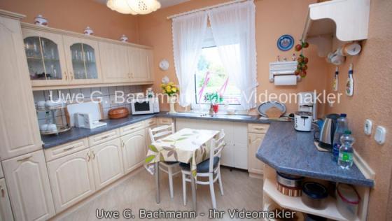 Vom Wohnzimmer aus geradezu über die Diele erreichen Sie die Einbauküche, ausgestattet mit allem, was Sie benötigen. Die Küche ist mit einem Cerankochfeld, einem Backofen, einer Umlufthaube, einem Kühlschrank und einem Geschirrspüler ausgestattet.