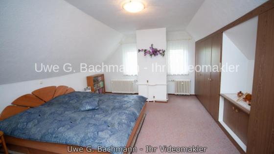 Über eine Treppe in der Diele gelangen sie in das Dachgeschoss. Hier befinden sich zwei weitere große Zimmer, die sich gleichermaßen als Schlaf- oder Kinderzimmer eignen würden. Weiterhin befindet sich in einem Zimmer ein großzügiger, praktischer Einbauschrank in der Dachschräge.