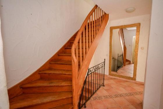 Im Obergeschoss stehen zwei Schlafzimmer sowie ein Badezimmer mit Wanne und Dusche zur Verfügung. Zusätzlich gibt es hier ein separates WC. Vom garteneitigen Schlafzimmer führt eine Außentreppe zur Terrasse.