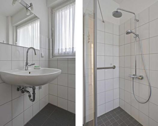 Erdgeschoss: Tageslichtbad mit bodentiefer Dusche (2015), separates Gäste-WC