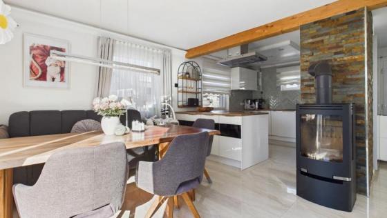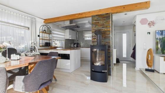 Gemütlicher Holzzusatzofen im Wohnbereich