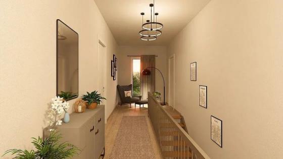 Die Stadtvilla 10.2 mit 135 m² verbindet modernes Wohnen mit einem Gefühl von Zuhause. Im Erdgeschoss öffnet sich der großzügige Wohnbereich - hell, offen und lebendig. Die Treppe steht dabei im Mittelpunkt: Raumtrenner und Gestaltungselement zugleich, das dem Zuhause Charakter verleiht. Hier wird gekocht, gelacht und gelebt. Praktisch ergänzt durch ein Gäste-WC und den Hauswirtschaftsraum, der den Alltag leichter macht. Im Obergeschoss warten Rückzugsorte für die ganze Familie - ein Elternzimmer mit Ankleide, zwei Kinderzimmer voller Ideen und ein Familienbad, das morgens wie abends zum Wohlfühlort wird.