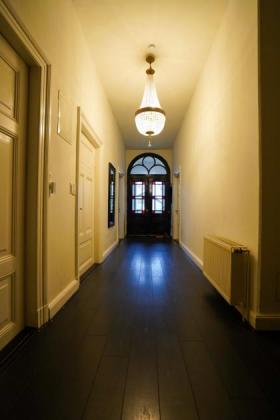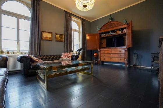 Die Wohnräume beeindrucken durch ihre Großzügigkeit, hohe Decken und lichtdurchflutete Raumwirkung. Große Fensterflächen sorgen für eine angenehme Atmosphäre und unterstreichen den besonderen Charakter des Hauses. Die Einrichtung ist geschmackvoll und hochwertig, mit einer gelungenen Kombination aus klassischen Elementen und modernen Akzenten.