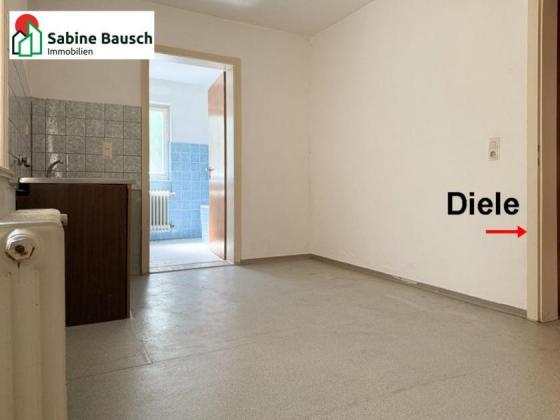 Im Erdgeschoss betreten Sie eine gut geschnittene Dreizimmerwohnung mit rund 75 m² Wohnfläche. Sie werden in der Diele begrüßt. Links befindet sich eine separate Tageslichttoilette. Rechts von der Diele befindet sich die Küche mit anschließendem Badezimmer, das aus einer ehemaligen Veranda entstanden ist. Zwei Wohnräume liegen gegenüber der Eingangstür, ein drittes Zimmer wurde auf der linken Seite der Diele angeordnet. Sehr angenehm ist die Deckenhöhe von 2,65 m.