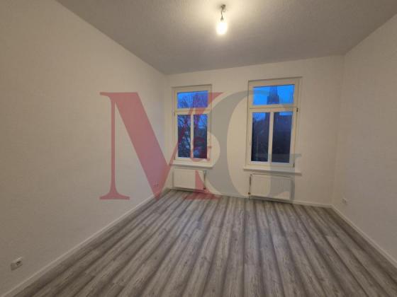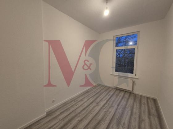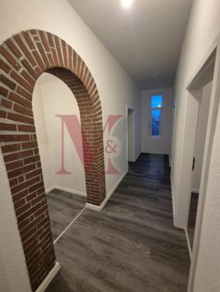 Die Wohnung wurde frisch gestrichen und ist mit modernem grauen Laminat ausgestattet.