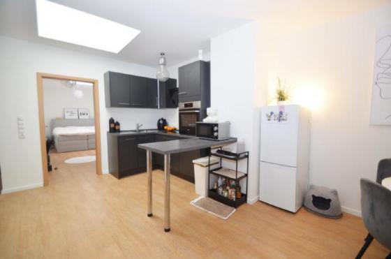 Das Wohnzimmerfenster von 2019 verfügt über einen elektrischen Rollladen. In Küche, Badezimmer und Schlafzimmer sorgen große Oberlichter für das Tageslicht. Der Bodenbelag in der gesamten Wohnung besteht aus einem hochwertigen Vinylboden. Das Badezimmer wurde im Jahr 2020/2021 erneuert und ist modern gestaltet mit bodentiefer Dusche, Badewanne und Handtuchheizkörper.