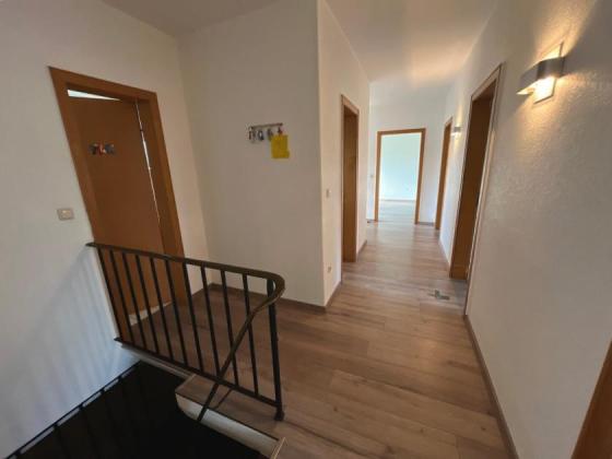 Die ca. 108 qm Wohnfläche auf einer Ebene teilen sich auf in ein ca. 29 qm großes Wohnzimmer mit Zugang zur teilweise überdachten Terrasse, einer geräumigen Küche mit Einbauküche und E-Geräten, WC und Duschbad sowie drei hellen Schlaf- / Wohnräumen.