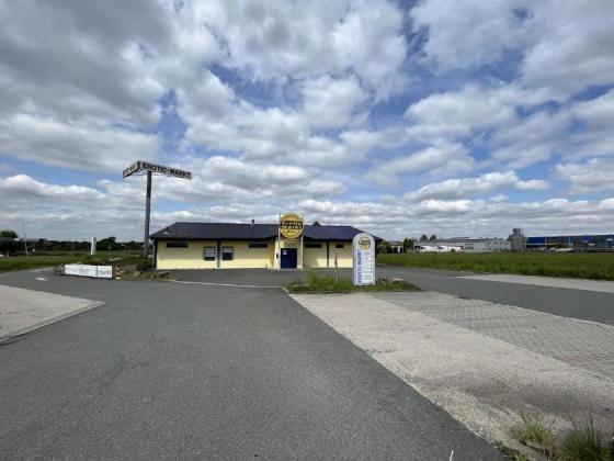 Zum Verkauf steht ein ehemaliges (leerstehendes) Verkaufsgebäude, wie auf den Bildern zu sehen, ein vermieteter LKW-Parkplatz direkt angrenzend und zwei Grünflächen, wie auf den Bildern zu sehen.