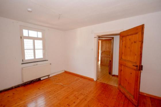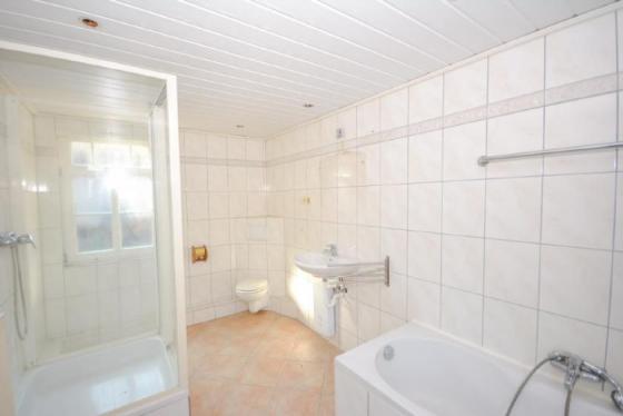 Zum Außenbereich gehören eine großzügige Hoffläche sowie eine offene Scheune. Parkmöglichkeiten sind direkt auf dem Grundstück vorhanden. Einige Modernisierungsmaßnahmen sind erforderlich, insbesondere hinsichtlich Feuchtigkeitsschäden und veralteter Installationen. Dennoch bietet das Objekt eine solide Bausubstanz und vielfältige Nutzungsmöglichkeiten.