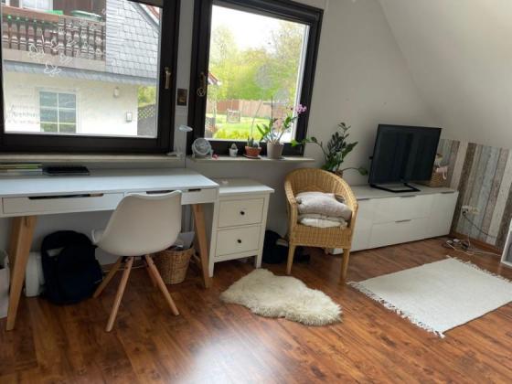 Im Obergeschoss erwarten Sie drei gemütliche Zimmer, die sich individuell als Schlaf-, Kinder- oder Arbeitszimmer einrichten lassen. Das Tageslichtbad mit ebenerdiger Dusche und Badewanne wurde 2025 modernisiert (Neue Fliesen und ebenerdige großzügige Dusche) – eine gelungene Kombination aus Komfort und Stil.