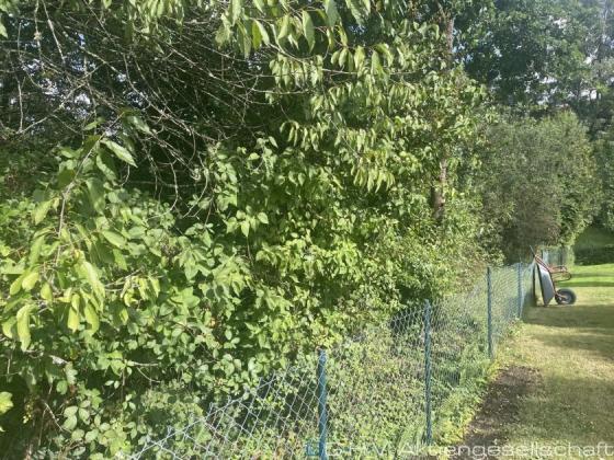 Gartenseitig ist großer Baumbewuchs zu entfernen.