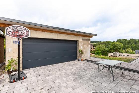 - massive Doppelgarage mit zwei elektrischen Sektionaltoren und Nebeneingangstür
