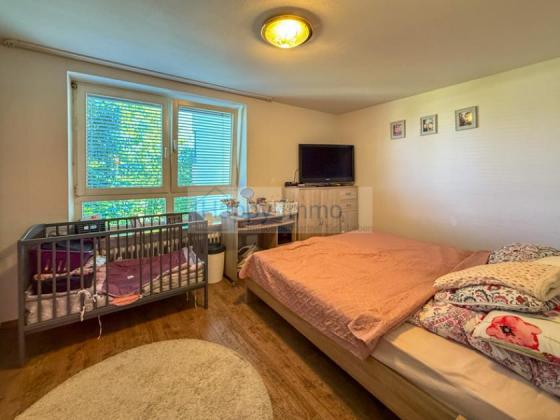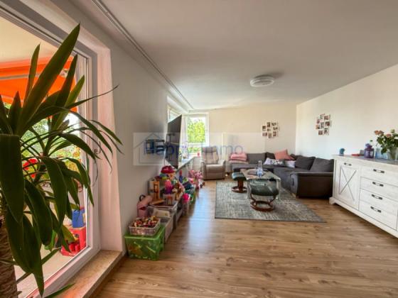 Sie erhalten ein großes Wohnzimmer mit Süd-West-Balkon, eine separate Küche mit Fenster, ein helles Schlafzimmer sowie ein Kinderzimmer. Ferner sind ein innenliegendes Bad mit Wanne und Platz für die Waschmaschine und ein separates WC vorhanden. Im Flur ist Platz für eine Garderobe.