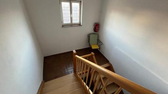 Zusätzlich gelangt man über eine Treppe in den ausgebauten Bühnenraum, der sich ideal als Gästezimmer oder auch kleines Büro eignet.
