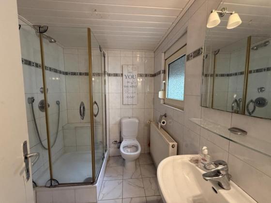 Das Obergeschoss bietet zwei Schlafzimmer, ein Durchgangszimmer sowie ein weiteres Badezimmer. Beide Bäder befinden sich in einem Anbau aus 1976.