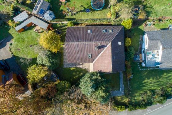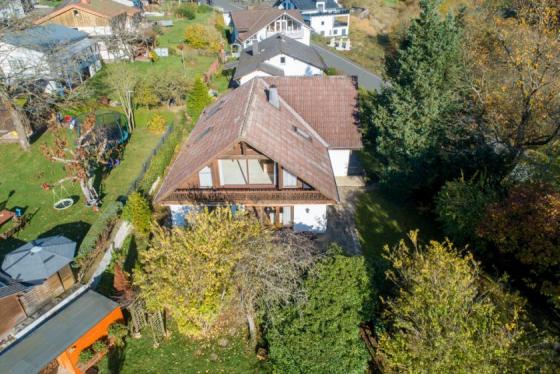 Ruhige, naturnahe Randlage | Landhausstil-Einfamilienhaus in Biedenkopf-Kernstadt | Baujahr 1967, Doppelgarage aus 1968, Dachgeschossaufbau in 1974, Teilmodernisierung 2012 | 850 m² Grundstück | EG: 4 - 5 Räume, Küche, Bad, separates WC, Terrasse | DG: 4 Räume, Bad, 2 Balkone | ca. 300 m² Wohnfläche | Teilkeller | Einbauküche | Garten | Gartenhaus mit Steinofen | 250.000 € Mindestgebotspreis | provisionsfrei (#19218)