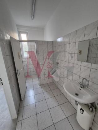Die Halle teilt sich in ein großes Hallenschiff und ein kleineres Hallenschiff mit anschließendem Büro und WC.