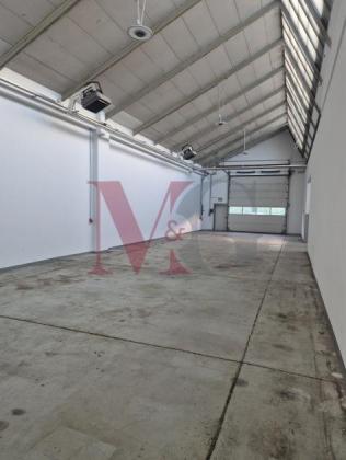 Die Halle verfügt über eine großzügige, offene Nutzfläche mit viel Tageslicht durch großflächige Fenster - ideal für ein angenehmes Arbeitsumfeld in Bereichen wie Lager, Produktion oder Werkstatt.