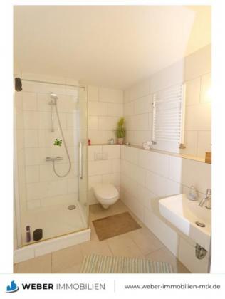 - Badezimmer (ca. 3,72 qm), Fliesen mit Dusche, Waschtisch und WC.