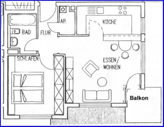 Die Wohnung hat 2 Zimmer und verfügt über einen Süd-Ost-Balkon.