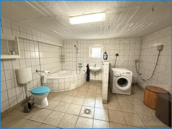 Das Untergeschoss des Hauses überzeugt mit zusätzlichem Stauraum in einem großzügigen Abstellraum. Hier finden Sie ebenso ein großes Badezimmer mit einer einladenden Eckwanne, die für Entspannung nach langen Tagen sorgt. Auch die Anschlußmöglickeiten für Waschmaschine und Trockner sind hier untergebracht.