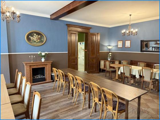 Das ehemalige Restaurant mit Küche, Tresen- und Gastraum, Vereinszimmer und Festsaal wird nicht mehr bewirtschaftet, ist aber ebenfalls in gepflegtem Zustand.