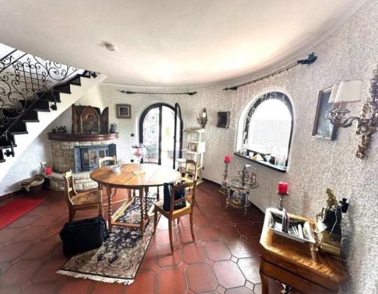 Die einzigartige Immobilie verfügt über insgesamt 5 Zimmer, einer großen Loggia, die vom Wohnzimmer und vom Schlafzimmer aus begehbar ist und ein zusätzlicher Balkon der vom "Turmzimmer" erreichbar ist.