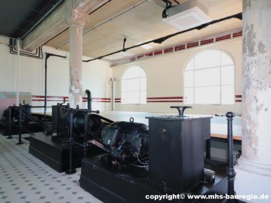 Im Pumpenhaus entstand ein Restaurant, 5 Gästezimmer, ein Frühstücksraum und ein Personalraum im Dachgeschoss. Das Restaurant hat mit Gastraum, Küche und sanitären Anlagen eine Größe von ca. 155 m². Hier können Ihre zukünftigen Gäste die noch funktionstüchtigen Pumpen können bewundern.
