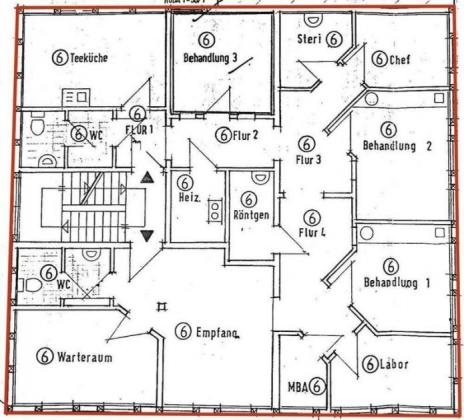Die angebotene Eigentumseinheit, komplette Etage (Teileigentum Nr. 6) liegt im 1. Obergeschoss besteht aus 11 Räumen zzgl. Flur, Heizraum, einer WC-Anlage (Damen / Herren) und einem einfachen WC.