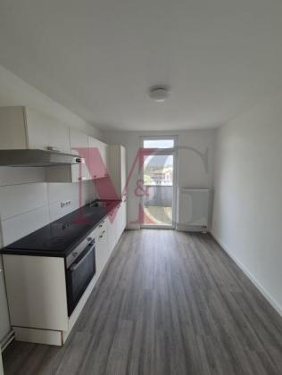 Die Küche ist mit einer modernen Einbauküche ausgestattet und bietet einen direkten Zugang zum Balkon. Dieser ist groß genug, um sich eine gemütliche Sitzecke im Freien einrichten zu können.