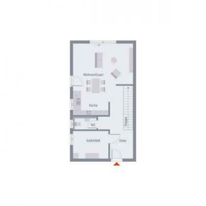 Purismus pur - dafür steht unser Doppelhaus 06. Allerdings spiegelt sich dieser Purismus nur in der schnörkellosen kubistischen Bauweise mit modernem Flachdach und symmetrischer Fassadengestaltung, nicht aber im Wohlfühlcharakter wider. Die beiden identisch konzipierten Wohneinheiten verfügen jeweils über eine Wohnfläche von rund 120 m2, verteilt auf zwei Etagen. Im Erdgeschoss führt der Weg durch die offen gestaltete Diele direkt ins Wohn-Ess-Zimmer mit integriertem Küchenbereich. Durch das offene Raumkonzept wird ein Gefühl von Größe und Weite vermittelt, das durch die großen Türfronten, die unmittelbar in den Garten führen, noch verstärkt wird. Parterre befinden sich zudem ein Gäste-WC und ein Hauswirtschaftsraum. Das Obergeschoss: Dank des Flachdaches kann der Raum maximal genutzt werden - und das in einem Elternschlafzimmer, den beiden Kinderzimmern sowie im geräumigen Bad, das ausreichend Platz für Wanne, Dusche und WC bietet. Im Doppelhaus 06 gehen Purismus und Behaglichkeit eine perfekte Symbiose ein.