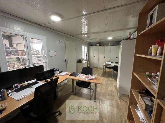 Das Objekt bietet 22,5 x 50 Meter (1.125 m²) Grundfläche in der neben der großen Einfahrt im Innenbereich der Bürocontainer steht.
