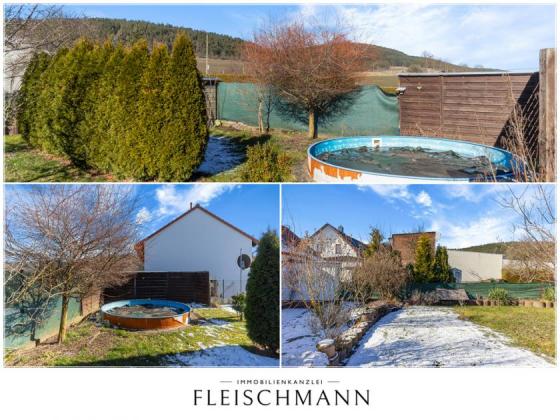 Auf einem gepflegten ca. 431 m² großen Grundstück am ruhigen Ortsrand von Plaue genießen Sie eine harmonische Wohnatmosphäre. Der liebevoll angelegte Garten mit Pool wird in den Sommermonaten zum persönlichen Erholungsort, während die nach Osten ausgerichtete Terrasse hinter dem Haus zu entspannten Morgenstunden einlädt.