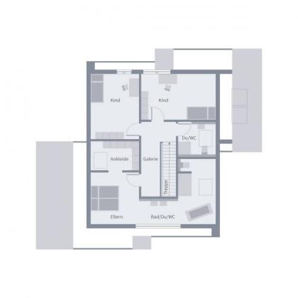 Im Erdgeschoss dieses Einfamilienhauses empfängt Sie ein großzügiges und offenes Wohnzimmer, das nahtlos ins Esszimmer und anschließend in die Küche übergeht. Diese lichtdurchflutete Raumgestaltung schafft eine einladende Atmosphäre, ideal für gesellige Abende mit Familie und Freunden. Von hier aus hat man zudem Zugang zur Terrasse. Ein besonderes Highlight des Hauses ist das große Carport, das nicht nur ausreichend Platz für Fahrzeuge bietet, sondern auch zusätzlichen Stauraum schafft. Im Dachgeschoss befinden sich zwei helle Kinderzimmer. Ein gemeinsames Badezimmer sorgt für zusätzlichen Komfort für die kleinen Bewohner. Das große Schlafzimmer für die Eltern ist ein Rückzugsort der Extraklasse, denn es verfügt über ein integriertes Badezimmer und eine angrenzende Ankleide. Unser Design 13.2 vereint durchdachte Raumkonzepte mit modernen Designelementen und schafft so ein Zuhause, das sowohl stilvoll als auch praktisch ist.