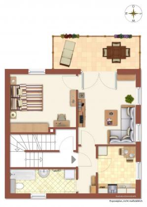- neuerer, hochwertiger Laminatboden in Wohn- und Schlafzimmern sowie im Flur und der Küche