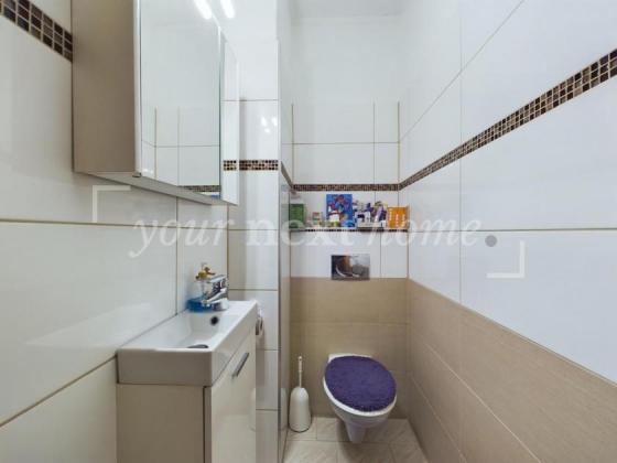 Besonders praktisch ist das Gäste-WC, das den Besuchern einen separaten Zugang zum Badezimmer ermöglicht, ohne den privaten Bereich betreten zu müssen. Die voll ausgestattete Küche und das gemütliche Schlafzimmer mit angrenzendem Bad bieten viel Komfort im Alltag.