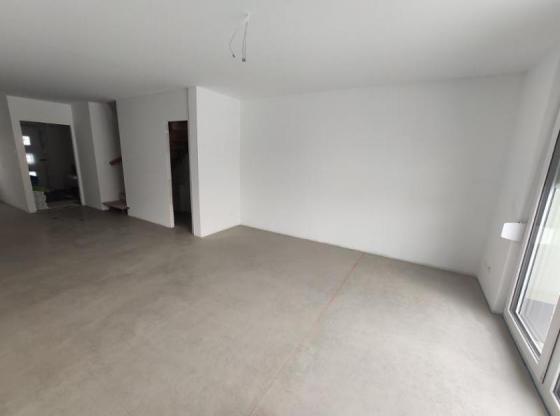 Das gesamte Erdgeschoss ist mit einer Fußbodenheizung ausgestattet. Als Bodenbelag sind Fliesen im Eingangsbereich und dem Gäste – WC verlegt, sonst ist im Erdgeschoss Vinylboden zu finden. Auf Wunsch kann das Haus mit einer Einbauküche angemietet werden