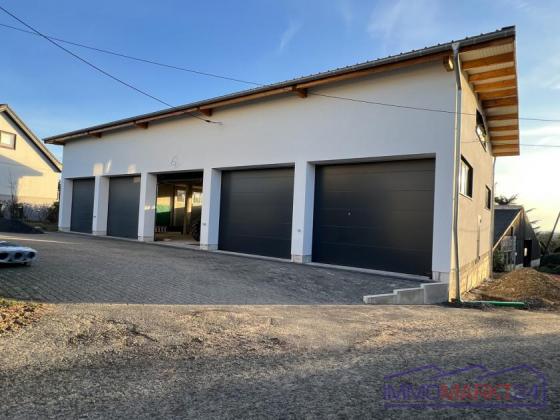 Die massiv gebaute Halle hat im Erdgeschoss ca. 298 m² Nutzfläche mit 5 elektrischen Rolltoren.