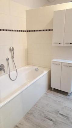 Das Bad des Hauses verfügt über eine Badewanne und eine Dusche. Selbstverständlich handelt es sich um ein Tageslichtbad. Die Dusche verfügt über eine Duschkabine, nicht nur über einen Vorhand.