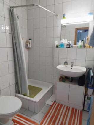In der Wohnung ist eine offen gestaltete Einbauküche vorhanden. Das Bad der Wohnung verfügt über und eine Dusche. Die Dusche verfügt über eine Duschkabine, nicht nur über einen Vorhand.